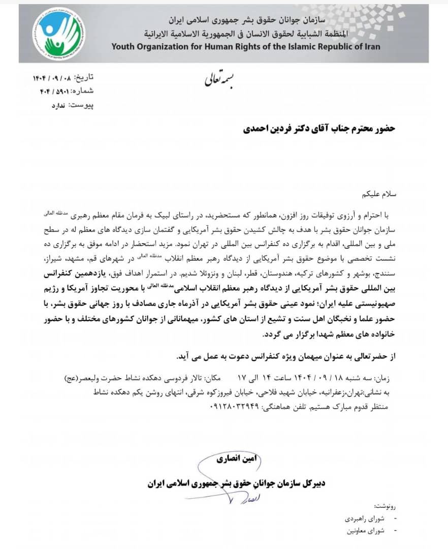 دعوت ویژه سازمان جوانان حقوق بشر ایران از دکتر فردین احمدی برای حضور در یازدهمین کنفرانس بین المللی حقوق بشر آمریکایی