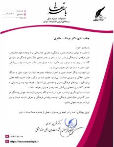 گفتنی است دکتر عزت‌ا… مظفری از فعالان شناخته‌شده فرهنگی و اجتماعی کشور است و در سال‌های اخیر همکاری‌های مستمر و مؤثری با مجموعه انتشارات بین‌المللی حوزه مشق داشته است.